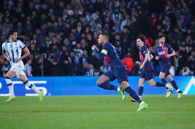 Kylian Mbappe - UEFA Champions League 2023/24 round of 16 second leg match between Real Sociedad (1) and Paris Saint-Germain (2) at the Reale Arena. San Sebastian - March 5, 2024