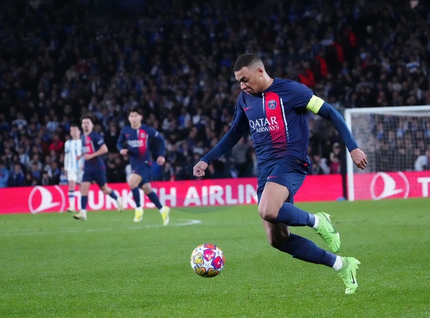 Kylian Mbappe - UEFA Champions League 2023/24 round of 16 second leg match between Real Sociedad (1) and Paris Saint-Germain (2) at the Reale Arena. San Sebastian - March 5, 2024