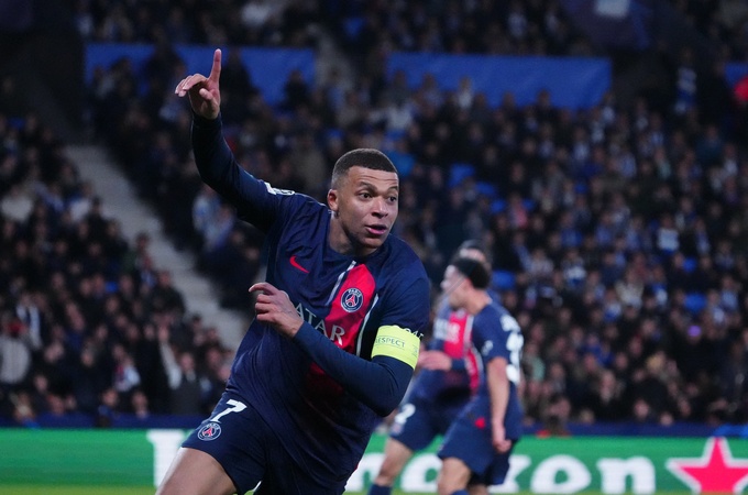 Kylian Mbappe - UEFA Champions League 2023/24 round of 16 second leg match between Real Sociedad (1) and Paris Saint-Germain (2) at the Reale Arena. San Sebastian - March 5, 2024
