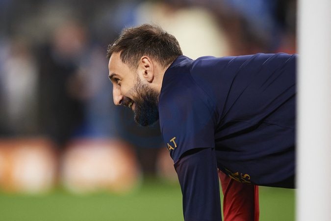 Gianluigi Donnarumma of Paris Saint Germain warming up during the UEFA Champions League match between Real Sociedad v Paris Saint Germain at Reale Arena on March 5, 2024 in San Sebastian (Photo by: LGM)