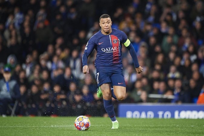 Kylian Mbappe of Paris Saint Germain runs with the ball during the UEFA Champions League match between Real Sociedad v Paris Saint Germain at Reale Arena on March 5, 2024 in San Sebastian (Photo by: LGM)