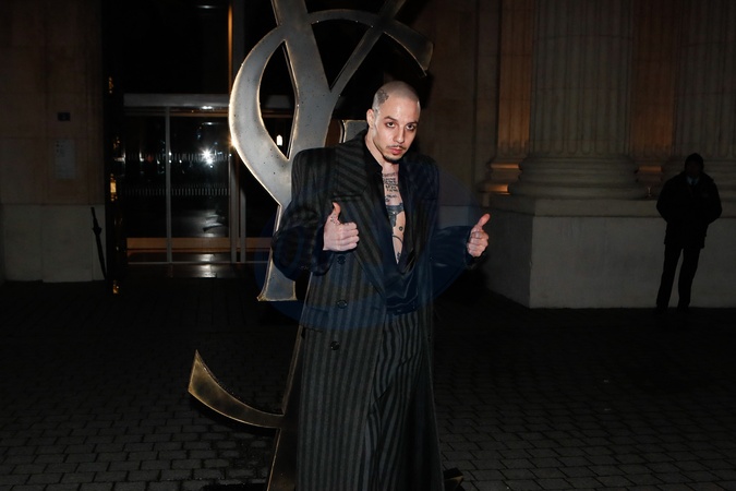 Mitch Modes - Photocall du défilé de la collection Homme Saint Laurent Automne/Hiver 2024-2025 dans le cadre de la Fashion Week de Paris le 5 mars 2024. © Christophe Clovis / Bestimage Photocall of the Saint Laurent Men's Fall/Winter 2024-2025 collection fashion show as part of Paris Fashion Week on March 5, 2024.