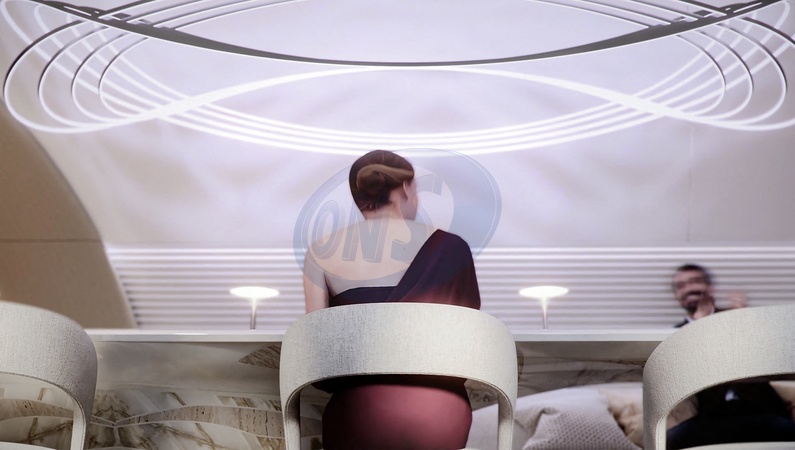Pictures must credit: PriestmanGoode A mouthwatering layout for private jet flyers has been created — for experiencing gourmet dining in flight. The Culinary Odyssey cabin has been designed to transform the way that the next generation of luxury passengers will use spaces. The galley and food creation areas are typically hidden away from guests or form part of the boarding space. The first impression is the sight of the chef's table from which London design company PriestmanGoode says "the culinary experience will unfold.” Although the chef's table is visible, the surface and surrounds are minimal, allowing this area to transform once service is completed. It works equally as a self-service dining area and in a different scenario the dining table can become a boardroom or co-working space. The lounge is configured for less formal discussion or work from a tablet – or as a relaxing, entertainment space. The kitchen walls are a woven metallic mesh material and the kitchen can be closed off when not in use. Picture supplied by JLPPA