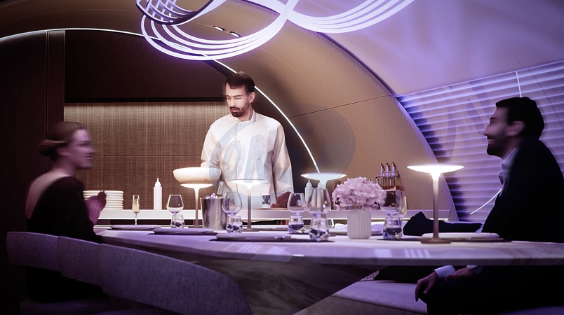 La cabine Culinary Odyssey a été conçue pour profiter d'un dîner gastronomique en jet privé