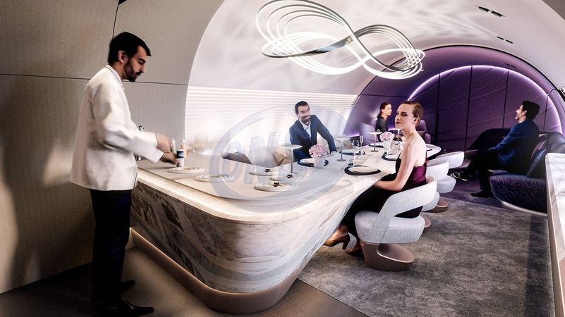 La cabine Culinary Odyssey a été conçue pour profiter d'un dîner gastronomique en jet privé