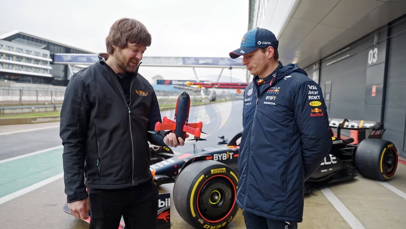 Pictures must credit: Red Bull Advanced Technologies /Dutch Drone Gods The world's fastest camera drone has been developed — to put a new angle on Formula 1 TV coverage. A pioneering Dutch drone company joined forces with the Red Bull team, to develop the drone. It was able to keep up with the team's three times world champion. Max Verstappen on laps around Britain's Silverstone circuit while sending back high quality images. The drone, created by Dutch Drone Gods, also known as DDG, was improved with the addition of aerodynamic testing and lighter materials by Red Bull's Advanced Technologies unit. The result was that the missile-shaped remote controlled flyer was able to hit speeds of up to 350 km/h The Red Bull PFV Drone was piloted around the track by DDG's founder Ralph Hogenbirk as it tailed Verstappen. The process saw over a year of development and multiple iterations from the DDG team before it was put to the test. Picture supplied by JLPPA
