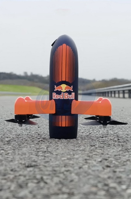 Pictures must credit: Red Bull Advanced Technologies /Dutch Drone Gods The world's fastest camera drone has been developed — to put a new angle on Formula 1 TV coverage. A pioneering Dutch drone company joined forces with the Red Bull team, to develop the drone. It was able to keep up with the team's three times world champion. Max Verstappen on laps around Britain's Silverstone circuit while sending back high quality images. The drone, created by Dutch Drone Gods, also known as DDG, was improved with the addition of aerodynamic testing and lighter materials by Red Bull's Advanced Technologies unit. The result was that the missile-shaped remote controlled flyer was able to hit speeds of up to 350 km/h The Red Bull PFV Drone was piloted around the track by DDG's founder Ralph Hogenbirk as it tailed Verstappen. The process saw over a year of development and multiple iterations from the DDG team before it was put to the test. Picture supplied by JLPPA