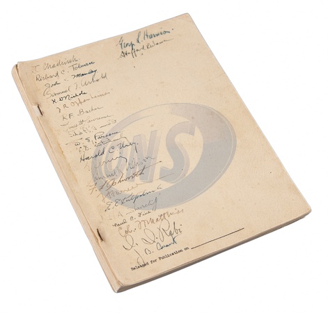 Pictures must credit: RR Auction A US report on the development of the atomic bomb, signed by 24 project contributors including J. Robert Oppenheimer is set to make a fortune at auction. The 200 page document was written prior to the testing of the first bomb. It is entitled "Atomic Bombs: A General Account of the Development of Methods of Using Atomic Energy for Military Purposes Under the Auspices of the United States Government, 1940-1945.” It is signed on the cove by the most prominent scientists and administrators engaged in developing and deploying the weapon during the operation known as The Manhattan Project, including Oppenheimer, The signatures were obtained for General Leslie Groves of the US war department by his secretary in Washington who asked the individuals to sign the book whenever they came to meet with Groves. Thanks to last year's hit film Oppenheimer about the bomb's development, the pre-sale estimate of $25,000 / €23.000 euros has already been surpassed with online bidding before the auction ends on March 13. It is being sold by US saleroom RR Auction. Picture supplied by JLPPA