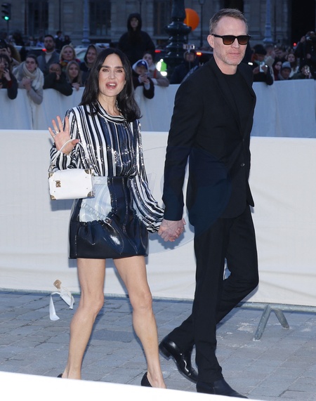Jennifer Connelly et son mari Paul Bettany - Arrivées au défilé de mode Louis Vuitton collection femme automne/hiver 2024-2025 au Louvre à Paris (PFW) le 5 mars 2024. © Denis Guignebourg / Bestimage Arrivals at the Louis Vuitton women's autumn/winter 2024-2025 fashion show at the Louvre in Paris (PFW) on 5 March 2024.