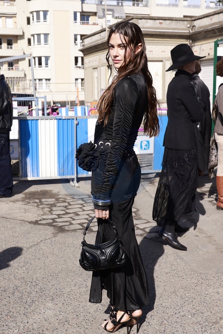 Arrivées au défilé de mode Marine Serre collection femme automne/hiver 2024-2025 à Paris (PFW)