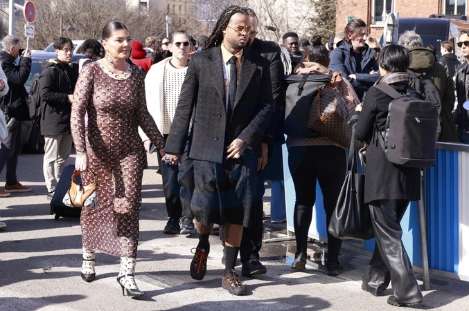 Arrivées au défilé de mode Marine Serre collection femme automne/hiver 2024-2025 à Paris (PFW)