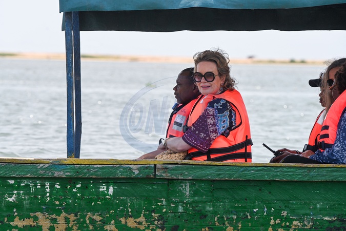 Côte d'Ivoire, Grand Lahou, 05 mars 2024 Sa Majesté la Reine Mathilde de Belgique lors de la mission de l'ONU en Côte d'Ivoire. Voyage en bateau jusqu'à la communauté de pêcheurs de Grand-Lahou. Visite de Grand-Lahou et de son cimetière. Rencontre avec les communautés locales de pêcheurs menacées par la montée du niveau de la mer. Voyage en bateau jusqu'à l'Embarcadère Grand-Lahou avec passage à travers les mangroves. Ivory Coast, Grand Lahou, 05 March 2024 His Majesty Queen Mathilde Belgium during the mission for the UN in Ivory Coast. Travel by boat to fishing community in Grand-Lahou. Visit of Grand-Lahou and its cemetery. Meeting with the local fishing communities threatened by the rising sea levels. Travel by boat to Embarcadère Grand-Lahou with passage through the mangroves. © F.Andrieu / Agencepeps