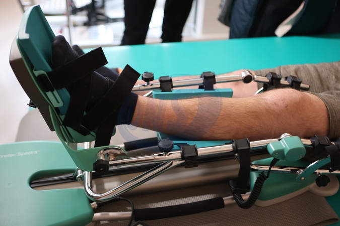 KALUSH, UKRAINE - MARCH 4, 2024 - A leg of a patient is pictured in the Medical Rehabilitation and Physical Therapy Department at the Kalush Central District Hospital, Kalush, Ivano-Frankivsk region, western Ukraine., Credit:Yurii Rylchuk / Avalon
