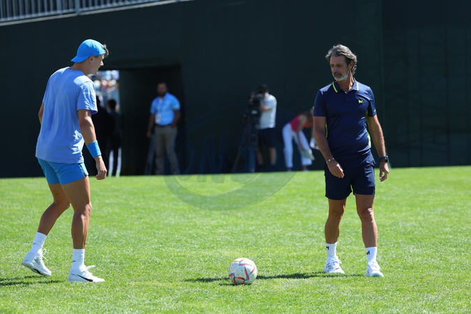 Holger Rune and Patrick Mouratoglou - Les joueurs s'entraînent avant le tournoi de tennis du BNP Paribas Open d'Indian Wells (Indian Wells Masters) en Californie le 6 mars 2024. Players practice before the BNP Paribas Indian Wells Open tennis tournament (Indian Wells Masters) in California on March 6, 2024.