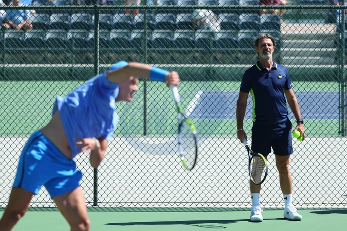 Holger Rune and Patrick Mouratoglou - Les joueurs s'entraînent avant le tournoi de tennis du BNP Paribas Open d'Indian Wells (Indian Wells Masters) en Californie le 6 mars 2024. Players practice before the BNP Paribas Indian Wells Open tennis tournament (Indian Wells Masters) in California on March 6, 2024.