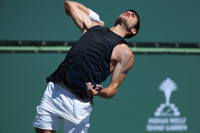 Carlos Alcaraz (Spa) - Les joueurs s'entraînent avant le tournoi de tennis du BNP Paribas Open d'Indian Wells (Indian Wells Masters) en Californie le 6 mars 2024. Players practice before the BNP Paribas Indian Wells Open tennis tournament (Indian Wells Masters) in California on March 6, 2024.