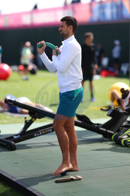 Novak Djokovic (Ser) - Les joueurs s'entraînent avant le tournoi de tennis du BNP Paribas Open d'Indian Wells (Indian Wells Masters) en Californie le 6 mars 2024. Players practice before the BNP Paribas Indian Wells Open tennis tournament (Indian Wells Masters) in California on March 6, 2024.
