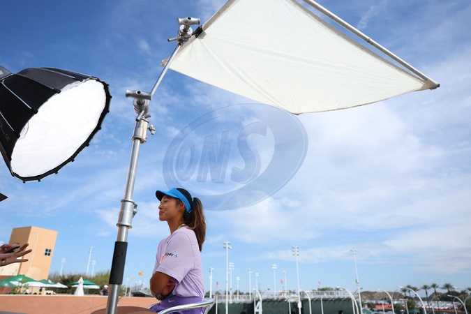 Qinwen Zheng (Chi) - Les joueurs s'entraînent avant le tournoi de tennis du BNP Paribas Open d'Indian Wells (Indian Wells Masters) en Californie le 6 mars 2024. Players practice before the BNP Paribas Indian Wells Open tennis tournament (Indian Wells Masters) in California on March 6, 2024.