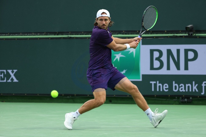Lucas Pouille (Fra) - Les joueurs s'entraînent avant le tournoi de tennis du BNP Paribas Open d'Indian Wells (Indian Wells Masters) en Californie le 6 mars 2024. Players practice before the BNP Paribas Indian Wells Open tennis tournament (Indian Wells Masters) in California on March 6, 2024.