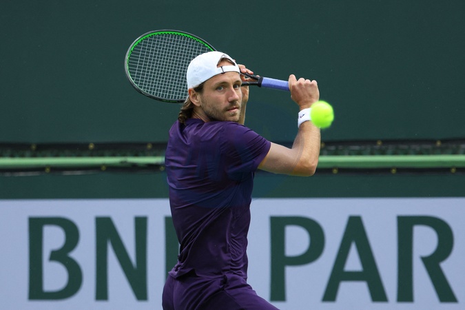 Lucas Pouille (Fra) - Les joueurs s'entraînent avant le tournoi de tennis du BNP Paribas Open d'Indian Wells (Indian Wells Masters) en Californie le 6 mars 2024. Players practice before the BNP Paribas Indian Wells Open tennis tournament (Indian Wells Masters) in California on March 6, 2024.
