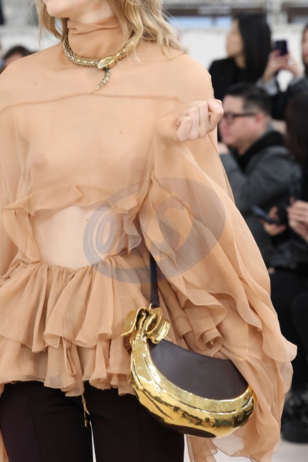 Chloe - Models On Catwalk during Paris Fashion Week 2024 For Fall Winter Fashion Show.CloseUp, Details, Accessories, Woman Women, Defile, Fashion Show Runway Collection, Pret A Porter, Modelwear, Modeschau Laufsteg FranceModel, Fashion, Style, Look, Fashion Show, Runway, Catwalk, Credit:www.fashionpps.com / Avalon