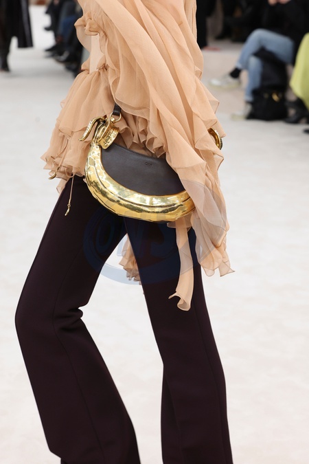 Chloe - Models On Catwalk during Paris Fashion Week 2024 For Fall Winter Fashion Show.CloseUp, Details, Accessories, Woman Women, Defile, Fashion Show Runway Collection, Pret A Porter, Modelwear, Modeschau Laufsteg FranceModel, Fashion, Style, Look, Fashion Show, Runway, Catwalk, Credit:www.fashionpps.com / Avalon