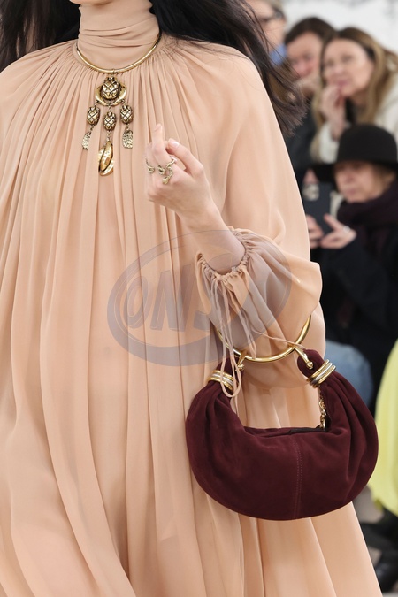 Chloe - Models On Catwalk during Paris Fashion Week 2024 For Fall Winter Fashion Show.CloseUp, Details, Accessories, Woman Women, Defile, Fashion Show Runway Collection, Pret A Porter, Modelwear, Modeschau Laufsteg FranceModel, Fashion, Style, Look, Fashion Show, Runway, Catwalk, Credit:www.fashionpps.com / Avalon
