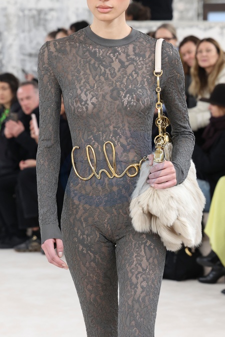 Chloe - Models On Catwalk during Paris Fashion Week 2024 For Fall Winter Fashion Show.CloseUp, Details, Accessories, Woman Women, Defile, Fashion Show Runway Collection, Pret A Porter, Modelwear, Modeschau Laufsteg FranceModel, Fashion, Style, Look, Fashion Show, Runway, Catwalk, Credit:www.fashionpps.com / Avalon