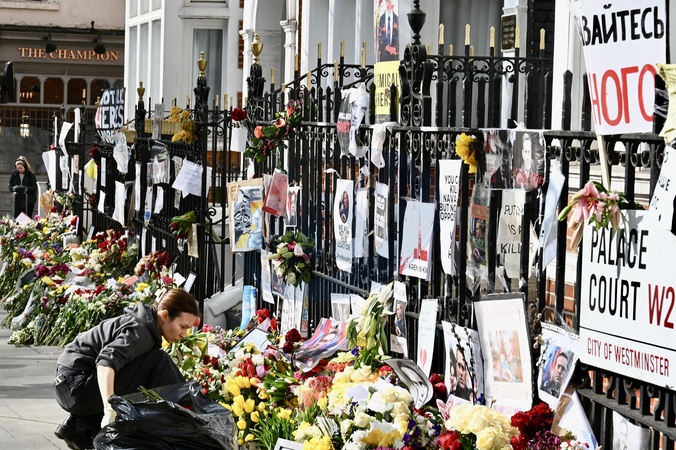 Hołd dla Alexeja Navalnego przed ambasadą Rosji w Londynie.