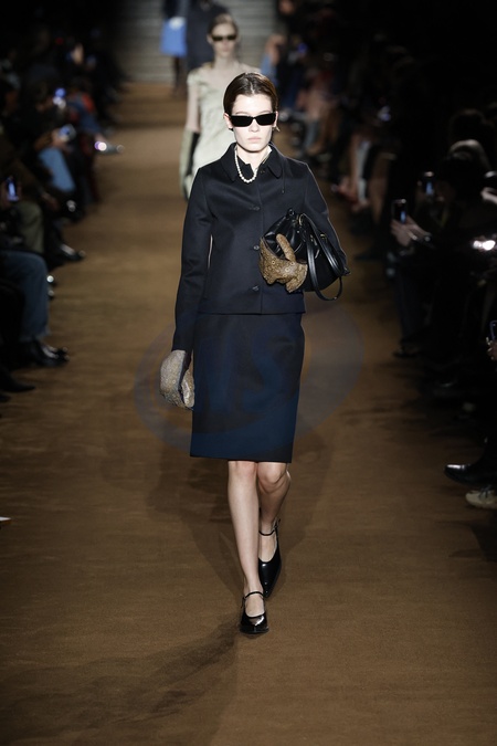 Défilé de mode Miu Miu collection femme automne/hiver 2024-2025 lors de la fashion week à Paris (PFW) le 5 mars 2024. A model wearing an original creation from the womenswear winter 2024 collections in Paris from the house of Miu Miu Miu Miu women's autumn/winter 2024-2025 fashion show at Paris Fashion Week (PFW) on 5 March 2024