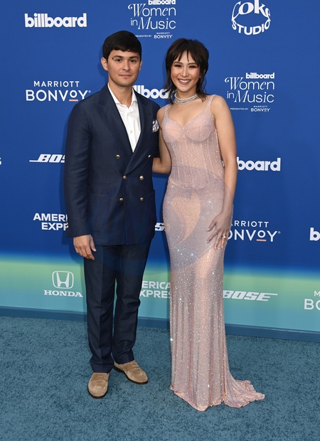Matteo Guidicelli and Sarah Geronimo arriving at the Billboard Women In Music 2024 held at the YouTube Theater on March 6, 2024 in Inglewood, CA.© Tammie Arroyo / AFF-USA.com