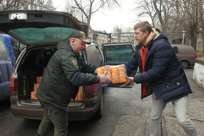 DNIPRO, UKRAINE - FEBRUARY 15, 2024 - Latvian volunteers brought food (pasta and cereals) to one of the hospitals in Dnipro, eastern Ukraine., Credit:Mykola Miakshykov / Avalon