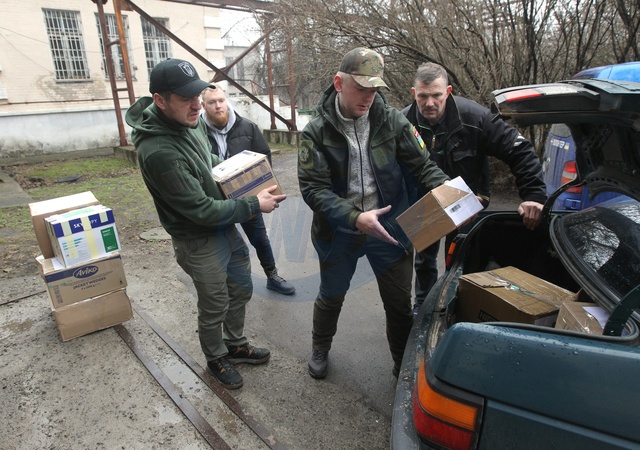 DNIPRO, UKRAINE - FEBRUARY 15, 2024 - Latvian volunteers brought food (pasta and cereals) to one of the hospitals in Dnipro, eastern Ukraine., Credit:Mykola Miakshykov / Avalon