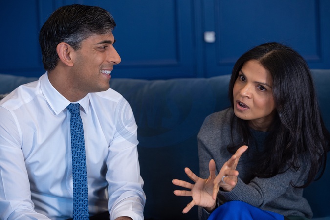 27/02/2024. London, United Kingdom. The Prime Minister Rishi Sunak and his wife Akshata Murty are interviewed for Grazia in their flat in 10 Downing Street., Credit:Simon Walker / Avalon
