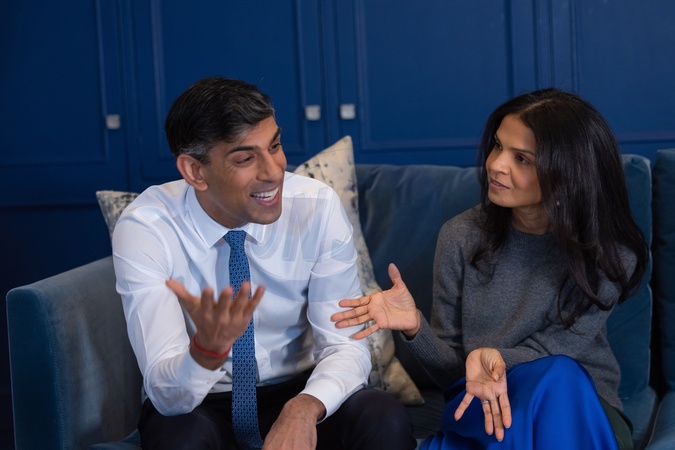 27/02/2024. London, United Kingdom. The Prime Minister Rishi Sunak and his wife Akshata Murty are interviewed for Grazia in their flat in 10 Downing Street., Credit:Simon Walker / Avalon