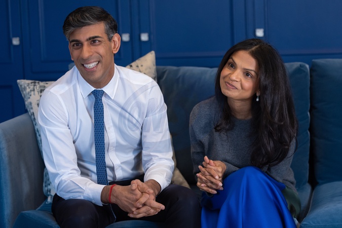 27/02/2024. London, United Kingdom. The Prime Minister Rishi Sunak and his wife Akshata Murty are interviewed for Grazia in their flat in 10 Downing Street., Credit:Simon Walker / Avalon