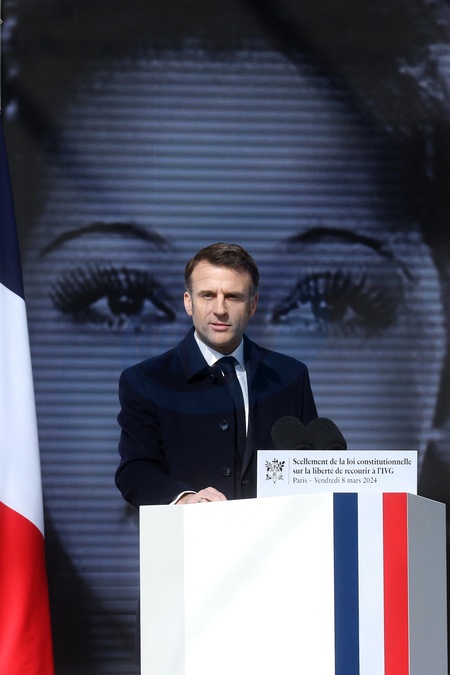 uroczystość przypieczętowania ustawy konstytucyjnej z 8 marca 2024 r. o swobodzie dobrowolnego przerwania ciąży (IVG) w Ministerstwie Sprawiedliwości Place Vendôme w Paryżu