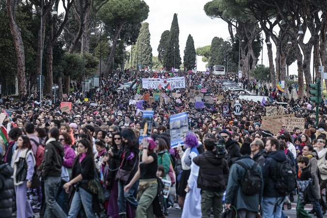 Members of the ''Non una di Meno'' movement are demonstrating for International Women's Rights Day, in Rome, Italy, on March 8, 2024