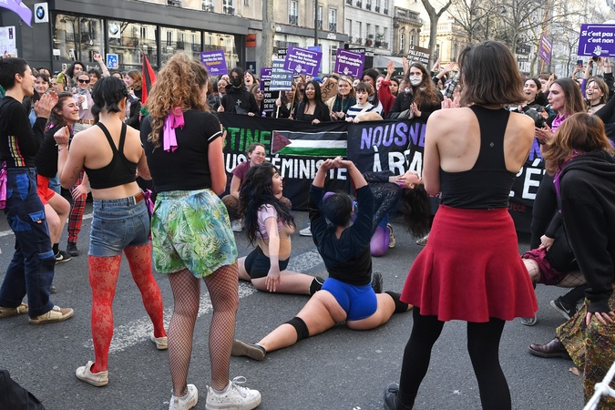 Demonstracja kobiet podczas Międzynarodowego Dnia Praw Kobiet w Paryżu