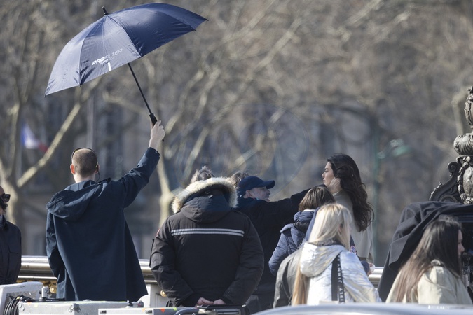 Exclusif - L'ambassadrice de l'Oréal Kendall Jenner continue de tourner une publicité pour l'Oréal sur le pont Alexandre III à Paris, France, le 8 mars 2024. No Web pour la Belgique et la Suisse Exclusive - For Gezrmany Call For Price - L'Oréal Paris ambassador Kendall Jenner continues to shoot an advertisement for L'Oréal on the Alexandre III bridge in Paris, France, on March 8, 2024.