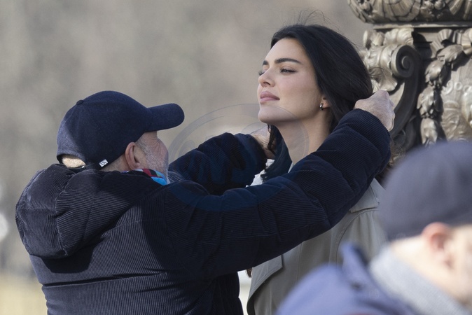 Exclusif - L'ambassadrice de l'Oréal Kendall Jenner continue de tourner une publicité pour l'Oréal sur le pont Alexandre III à Paris, France, le 8 mars 2024. No Web pour la Belgique et la Suisse Exclusive - For Gezrmany Call For Price - L'Oréal Paris ambassador Kendall Jenner continues to shoot an advertisement for L'Oréal on the Alexandre III bridge in Paris, France, on March 8, 2024.