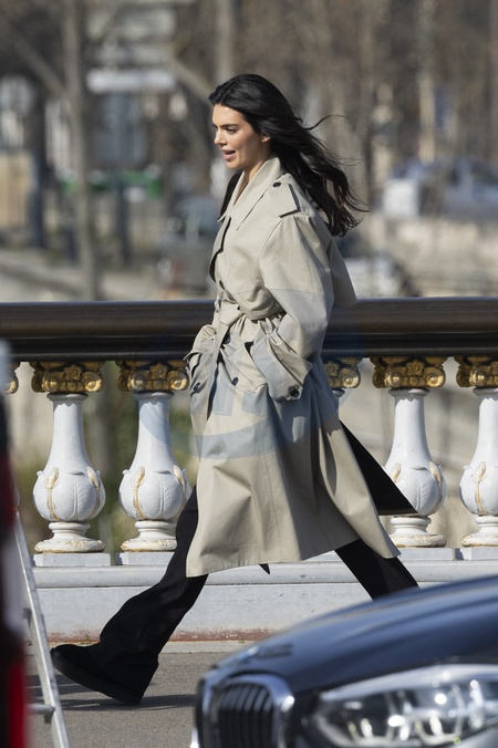 Exclusif - L'ambassadrice de l'Oréal Kendall Jenner continue de tourner une publicité pour l'Oréal sur le pont Alexandre III à Paris, France, le 8 mars 2024. No Web pour la Belgique et la Suisse Exclusive - For Gezrmany Call For Price - L'Oréal Paris ambassador Kendall Jenner continues to shoot an advertisement for L'Oréal on the Alexandre III bridge in Paris, France, on March 8, 2024.