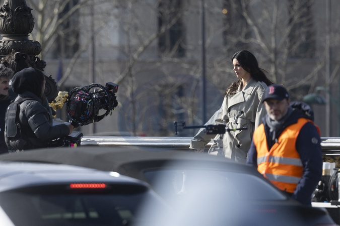Exclusif - L'ambassadrice de l'Oréal Kendall Jenner continue de tourner une publicité pour l'Oréal sur le pont Alexandre III à Paris, France, le 8 mars 2024. No Web pour la Belgique et la Suisse Exclusive - For Gezrmany Call For Price - L'Oréal Paris ambassador Kendall Jenner continues to shoot an advertisement for L'Oréal on the Alexandre III bridge in Paris, France, on March 8, 2024.