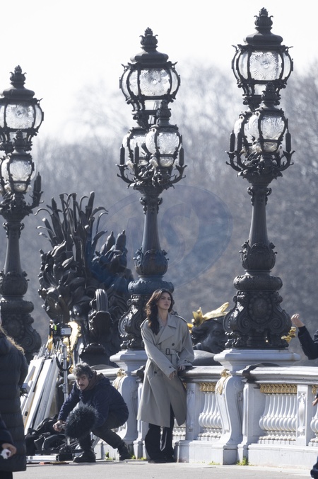 Exclusif - L'ambassadrice de l'Oréal Kendall Jenner continue de tourner une publicité pour l'Oréal sur le pont Alexandre III à Paris, France, le 8 mars 2024. No Web pour la Belgique et la Suisse Exclusive - For Gezrmany Call For Price - L'Oréal Paris ambassador Kendall Jenner continues to shoot an advertisement for L'Oréal on the Alexandre III bridge in Paris, France, on March 8, 2024.
