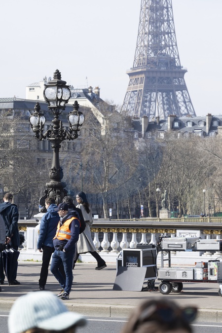 Exclusif - L'ambassadrice de l'Oréal Kendall Jenner continue de tourner une publicité pour l'Oréal sur le pont Alexandre III à Paris, France, le 8 mars 2024. No Web pour la Belgique et la Suisse Exclusive - For Gezrmany Call For Price - L'Oréal Paris ambassador Kendall Jenner continues to shoot an advertisement for L'Oréal on the Alexandre III bridge in Paris, France, on March 8, 2024.