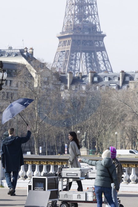 Exclusif - L'ambassadrice de l'Oréal Kendall Jenner continue de tourner une publicité pour l'Oréal sur le pont Alexandre III à Paris, France, le 8 mars 2024. No Web pour la Belgique et la Suisse Exclusive - For Gezrmany Call For Price - L'Oréal Paris ambassador Kendall Jenner continues to shoot an advertisement for L'Oréal on the Alexandre III bridge in Paris, France, on March 8, 2024.