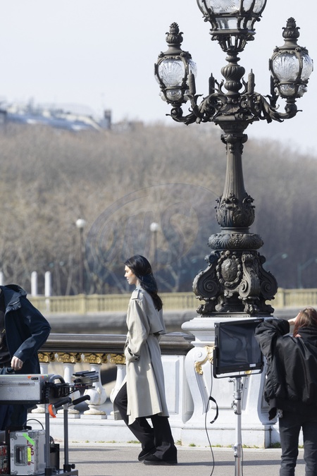 Exclusif - L'ambassadrice de l'Oréal Kendall Jenner continue de tourner une publicité pour l'Oréal sur le pont Alexandre III à Paris, France, le 8 mars 2024. No Web pour la Belgique et la Suisse Exclusive - For Gezrmany Call For Price - L'Oréal Paris ambassador Kendall Jenner continues to shoot an advertisement for L'Oréal on the Alexandre III bridge in Paris, France, on March 8, 2024.