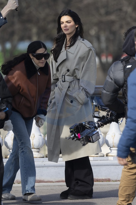 Exclusif - L'ambassadrice de l'Oréal Kendall Jenner continue de tourner une publicité pour l'Oréal sur le pont Alexandre III à Paris, France, le 8 mars 2024. No Web pour la Belgique et la Suisse Exclusive - For Gezrmany Call For Price - L'Oréal Paris ambassador Kendall Jenner continues to shoot an advertisement for L'Oréal on the Alexandre III bridge in Paris, France, on March 8, 2024.