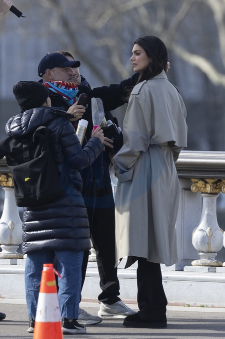 Exclusif - L'ambassadrice de l'Oréal Kendall Jenner continue de tourner une publicité pour l'Oréal sur le pont Alexandre III à Paris, France, le 8 mars 2024. No Web pour la Belgique et la Suisse Exclusive - For Gezrmany Call For Price - L'Oréal Paris ambassador Kendall Jenner continues to shoot an advertisement for L'Oréal on the Alexandre III bridge in Paris, France, on March 8, 2024.