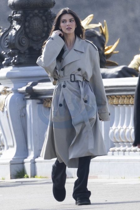 Exclusif - L'ambassadrice de l'Oréal Kendall Jenner continue de tourner une publicité pour l'Oréal sur le pont Alexandre III à Paris, France, le 8 mars 2024. No Web pour la Belgique et la Suisse Exclusive - For Gezrmany Call For Price - L'Oréal Paris ambassador Kendall Jenner continues to shoot an advertisement for L'Oréal on the Alexandre III bridge in Paris, France, on March 8, 2024.